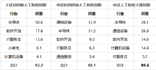 表1:三只东谈主工智能关系指数前五大行业踱步对比(申万二级)