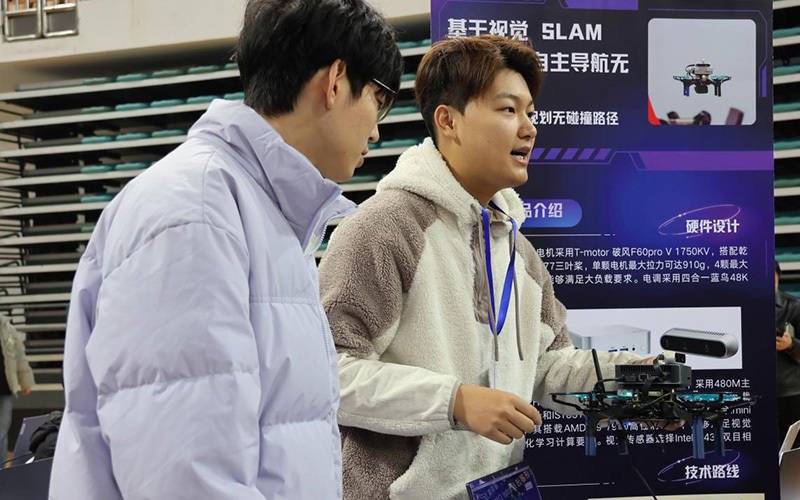 现场,天津大学参赛队研发的“基于视觉SLAM的全场景自主导航无东谈主机”,通过双目视觉与惯性单元交融技巧,见效突破GPS拒止环境下的定位清苦。天津科技大学参赛作品“大‘糖’特务”,将前沿科技与慢性病防控笼统联络,以多模态数据开动的可穿着传感技巧完结无创血糖监测。“这类神气式学习能灵验进步学生系统想维与产业适配能力。”天津市东谈主工智能学会通知长冯为嘉点评说。
